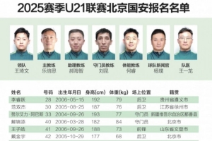 体育资讯4月9日讯 出征U-21联赛前,北京国安俱乐部青少部官方发布了国安U-21队的参赛名单。这支球队由乐倍思挂帅,前国脚杨璞担任球队新闻官。